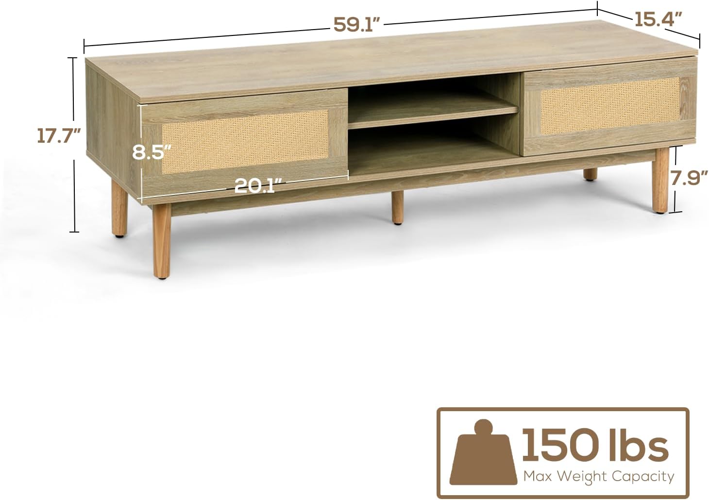 - 【Sturdy Construction】The 4 solid wood legs and an additional middle leg make this media unit stable. It can hold up yo 150 pounds.SIZE: 59" L x 15.4" W x 17.7" H