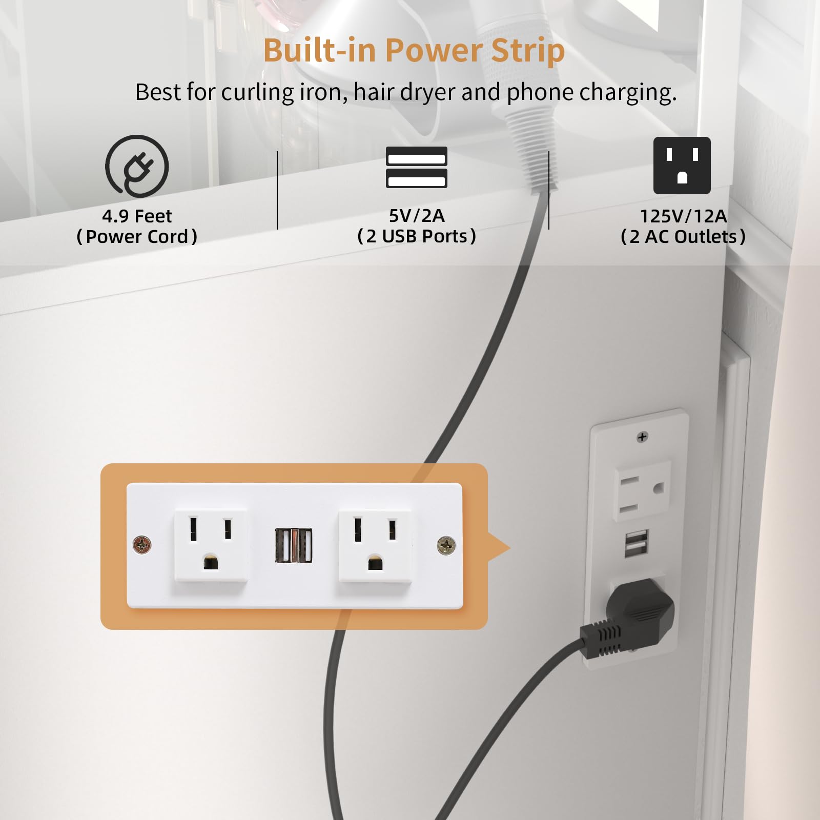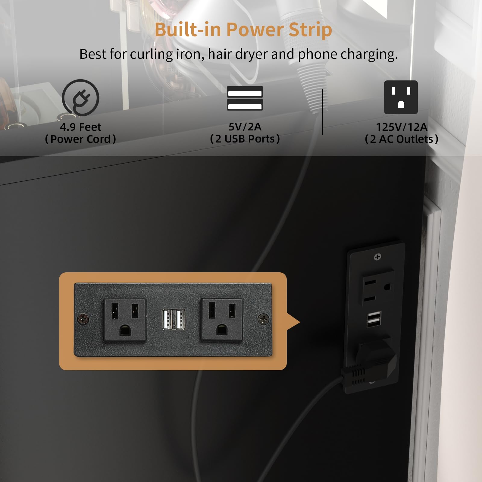 One of the standout features of this product is the built-in outlet. Equipped with two plug sockets and two USB ports, you can conveniently connect your beauty tools such as hair dryers, curling irons, or electric brushes. Say goodbye to tangled cords and limited outlets - now you can effortlessly style your hair while sitting at your vanity.